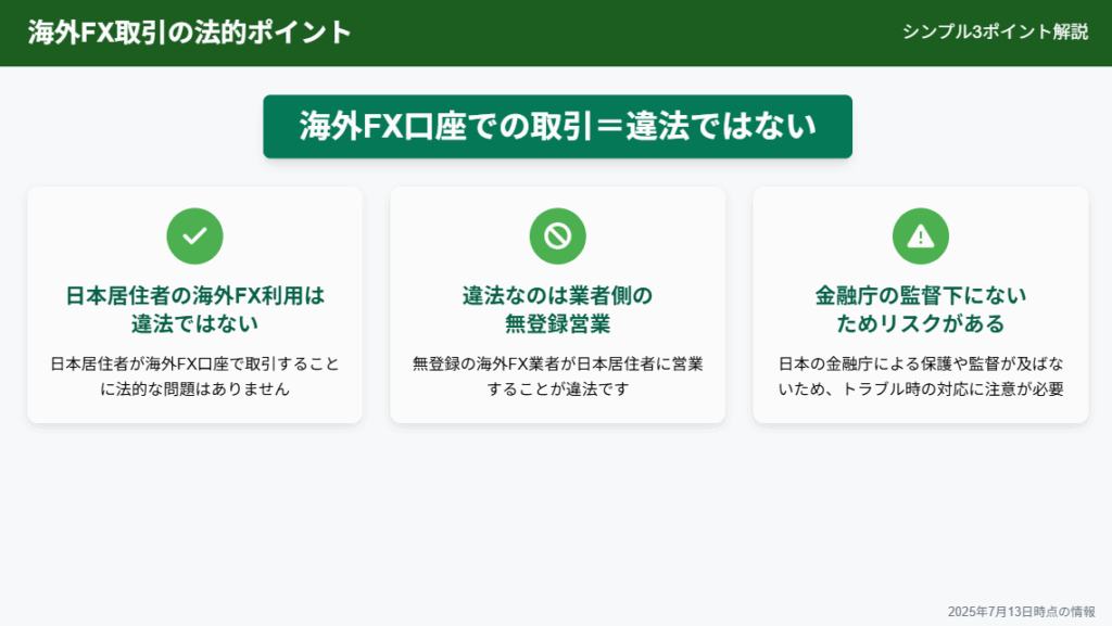 つまり、海外FXを利用すること自体は法的に問題ないということですね