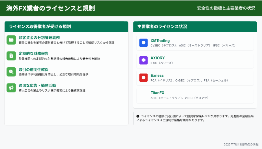 金融ライセンスの取得状況は海外FX業者の安全性・信頼性を判断する最も重要な基準です