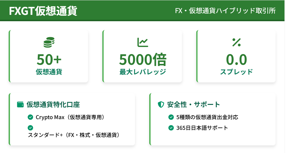 ハイブリッド業者FXGT仮想通貨を最大1,000倍のレバレッジ