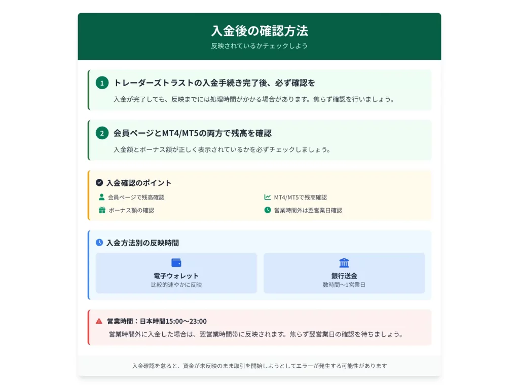 反映時間は、TradersTrustの営業時間(日本時間15時~23時)内での処理となります。