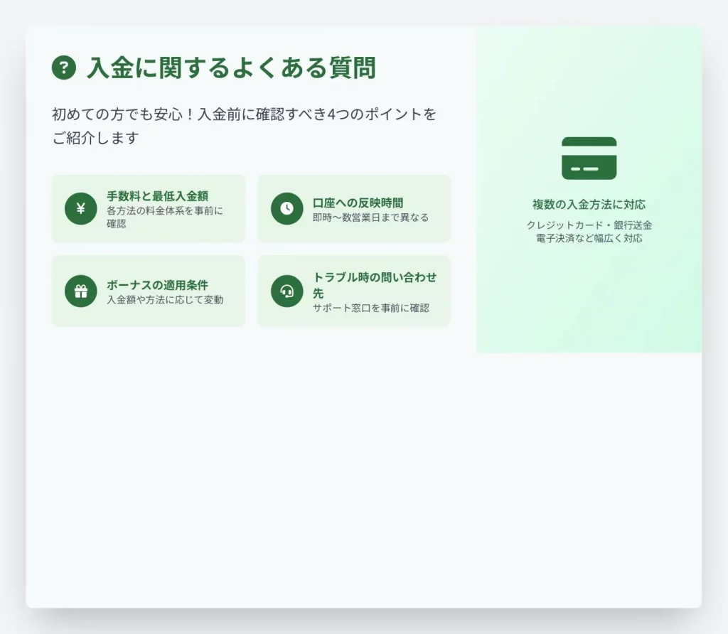 入金トラブルを回避し、スムーズに取引をスタートさせましょう。