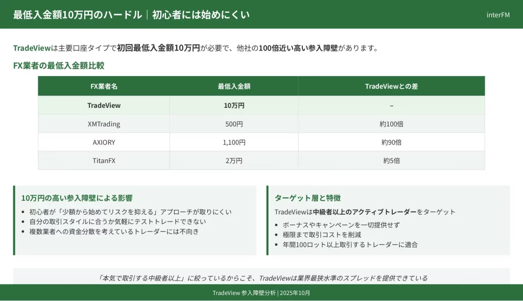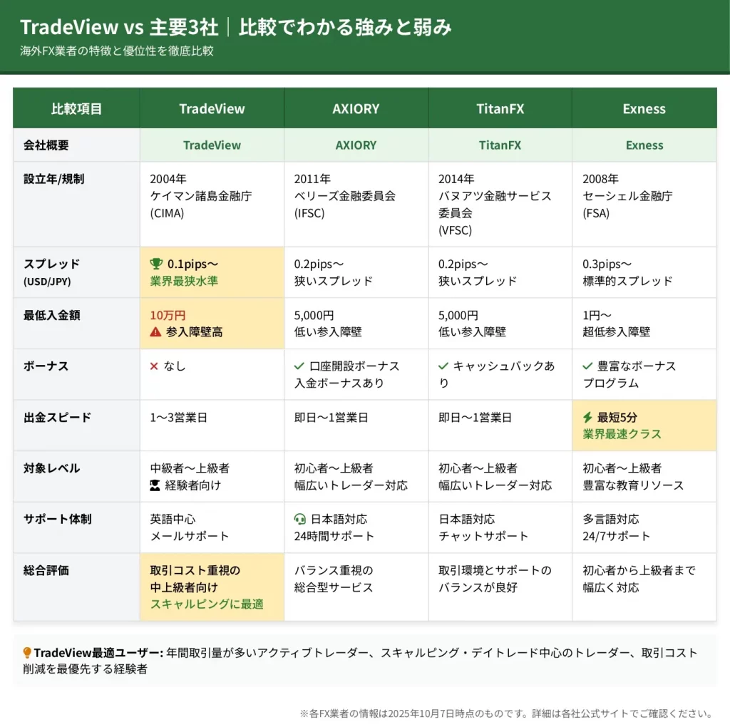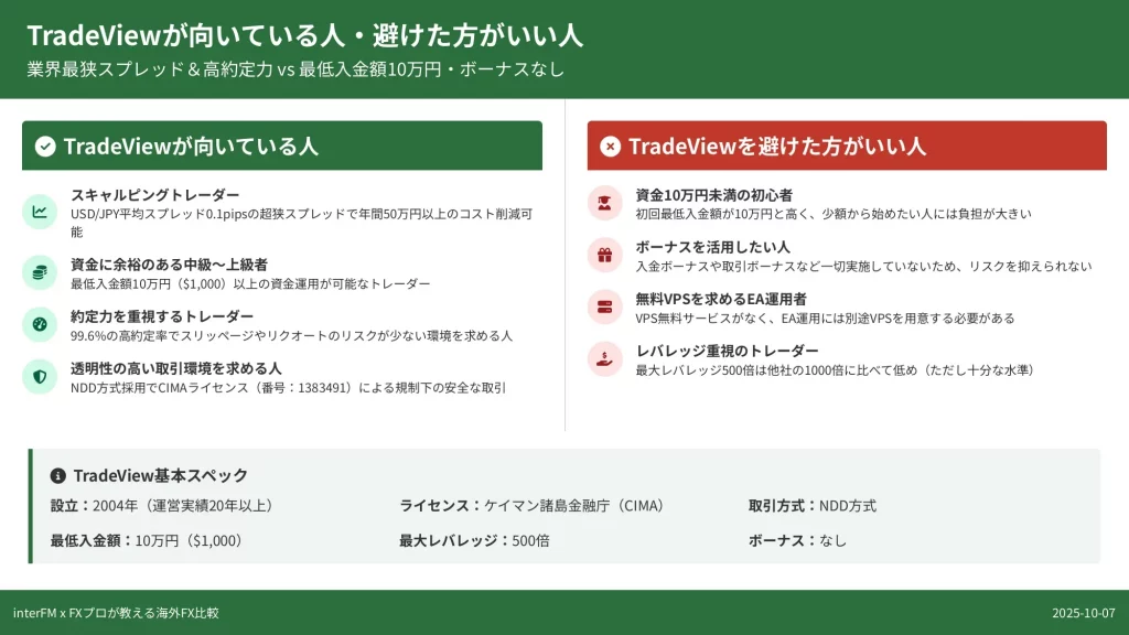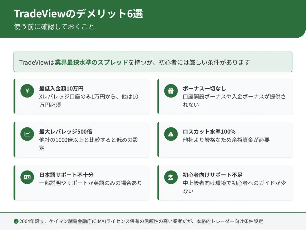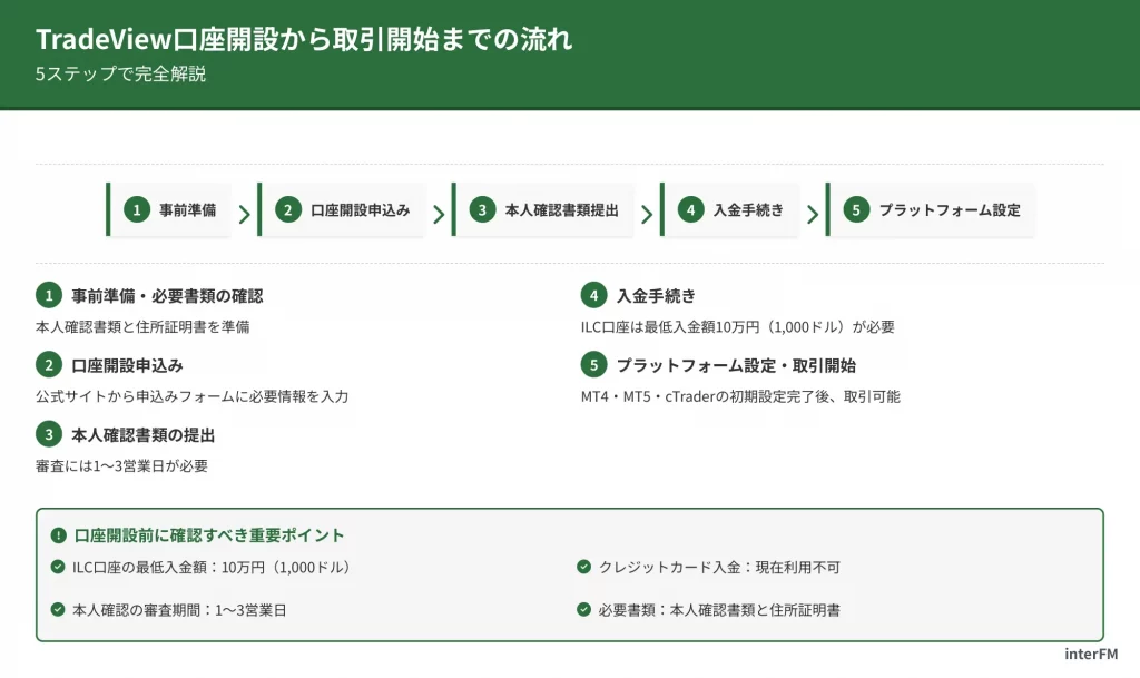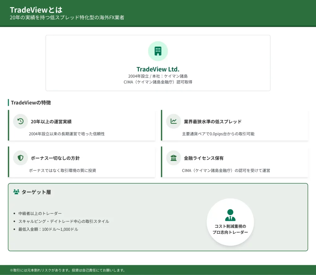 スプレッド・手数料・最低入金額などの取引条件は予告なく変更される場合があるため、口座開設前に必ずTradeView公式サイトで最新情報を確認してください。