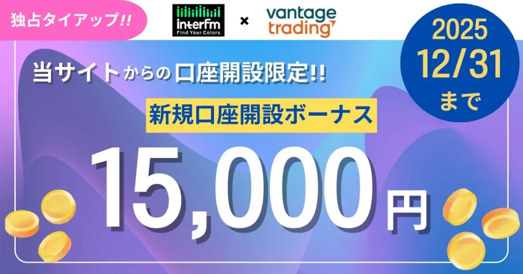 Vantageは初回120%、2回目50%、3回目以降20%の入金ボーナスを提供しており、最大300万円分のボーナスを受け取ることができます。