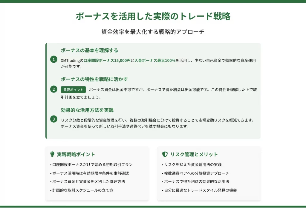 XMTradingのボーナスシステムを最大限活用しながら、同時にリスクを最小限に抑えるためには、体系的なアプローチが必要です。