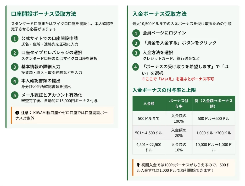 XMTradingでは、口座開設ボーナス15,000円最大10,500ドル相当の入金ボーナスを提供しており、これらのボーナスを最大限活用するためには、適切な手続きと条件の理解が不可欠です。