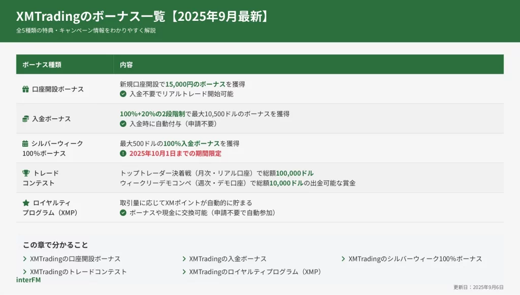 XMTradingでは2025年11月現在、合計5つのボーナスキャンペーン・プロモーションを開催しています。
