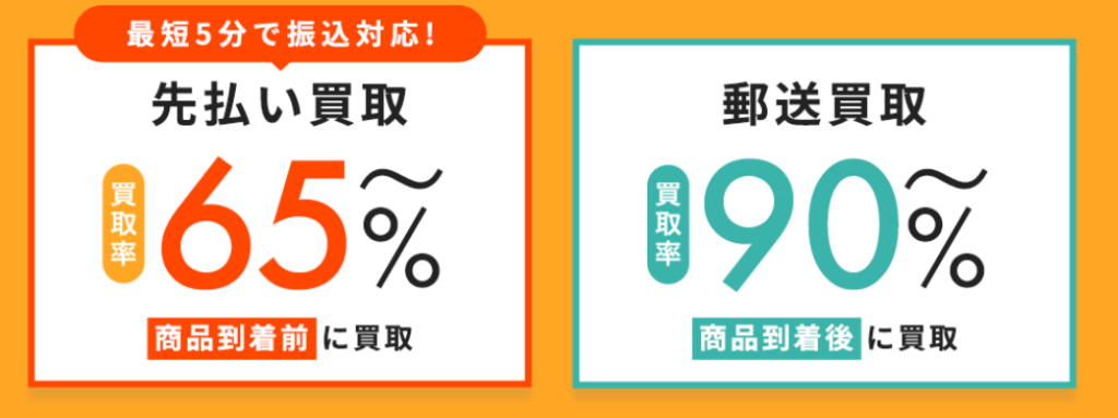 | 買取方法 | 先払い買取 | 郵送買取 |