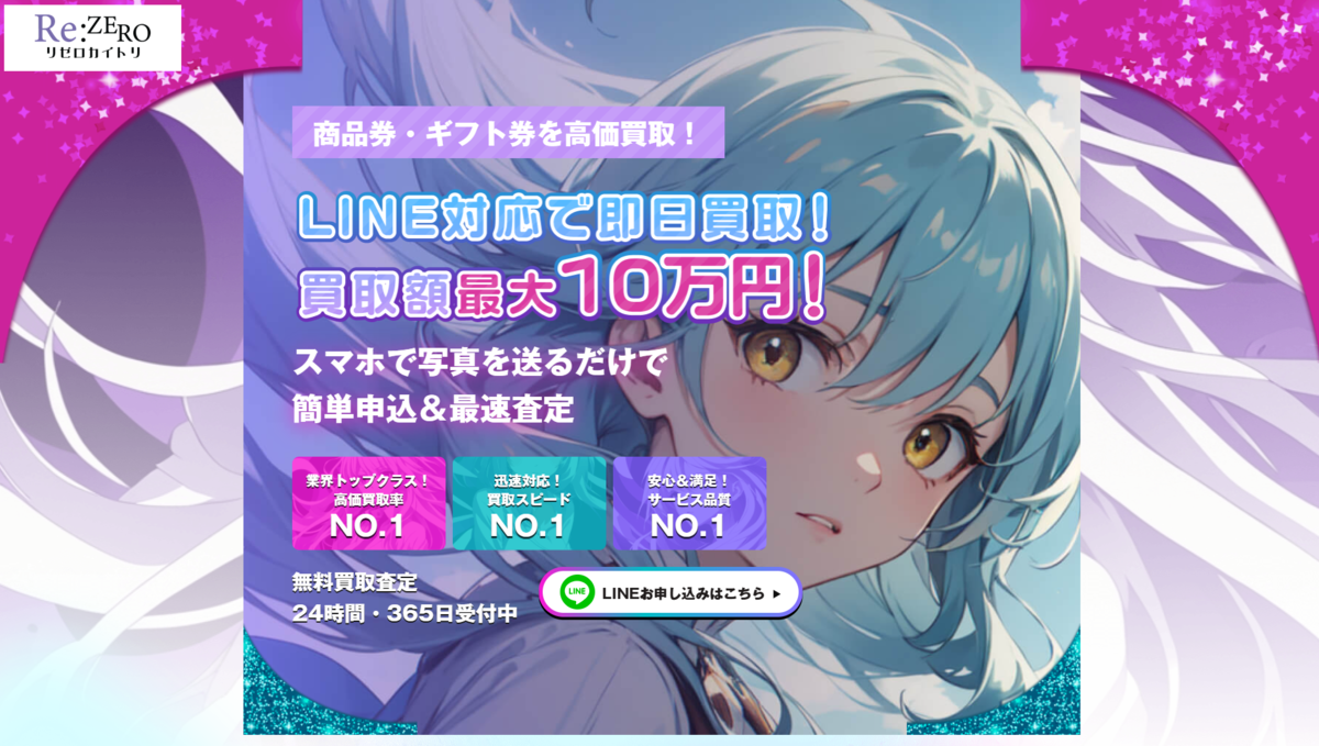 リゼロカイトリは、商品券や金券を対象に「すぐに現金化できる」と宣伝している先払い買取業者です。正規サービスのような印象を与えますが、実際にはリスクの高い仕組みが潜んでいます。