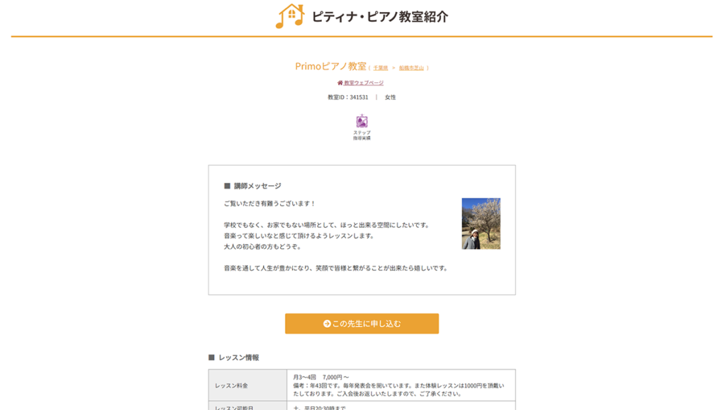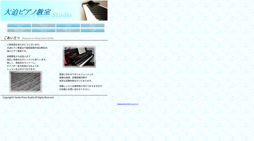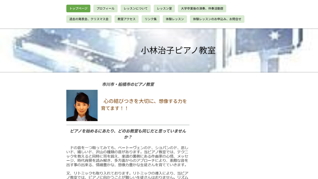 教室は習志野台の住宅街にあり、静かで集中できる雰囲気が特徴です。発表会やコンクール参加など、学んだ成果を披露する場も設けられており、モチベーションを高めながら継続して学べる点も魅力です。アットホームな環境で、確かな技術と音楽の楽しさを同時に身につけたい方におすすめのピアノ教室です。