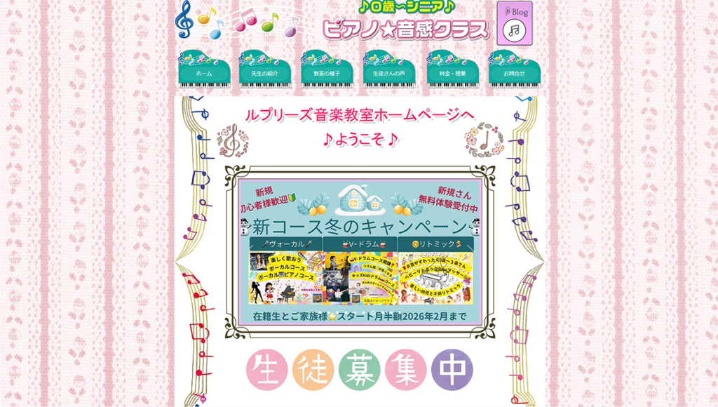 - 未就学児〜大人まで幅広い年代に対応し、初心者でも安心して学べる個人レッスン体制