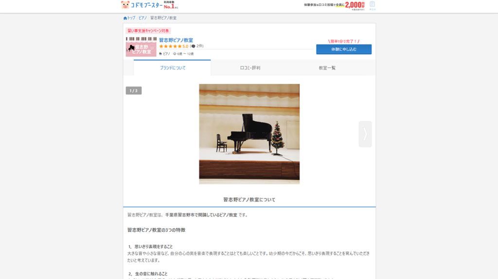 - 全国展開の大手音楽教室で、カリキュラムやサポート体制が整っている