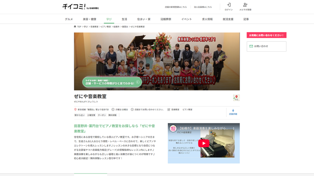 - 幅広い世代に対応したピアノレッスンと「絶対音感プログラム」が魅力