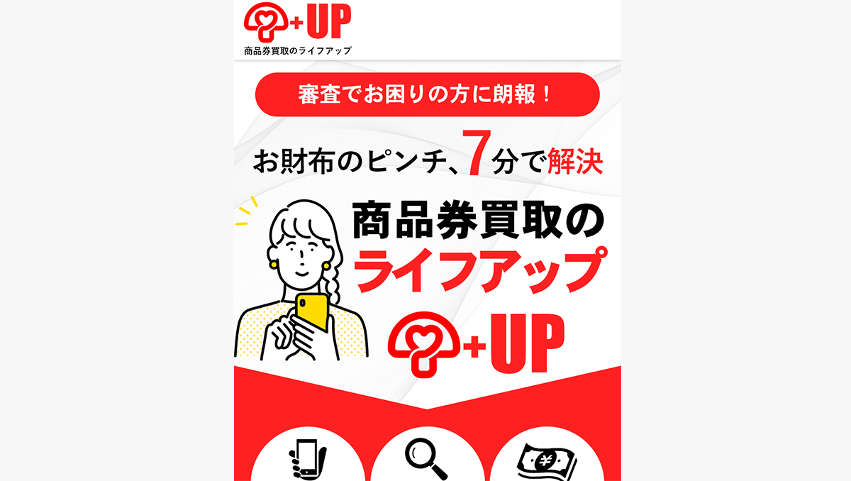 ライフアップは、商品券やギフトカードなどの金券類を対象にした先払い買取サービスを提供している業者です。一般的な金券ショップのように「商品到着後に入金」ではなく、査定後すぐに入金が行われる点が特徴です。申し込みから振込までオンラインで完結するケースが多く、来店の必要はありません。