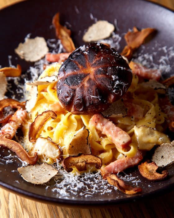 一番採り生どんことトリュフを合わせた香り高い一品。自慢の生パスタを、期間限定のカルボナーラで提供します。