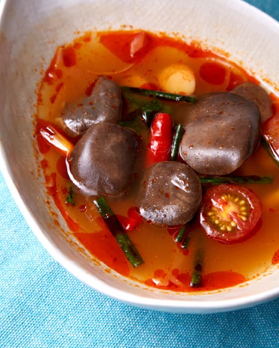 旨味とコクたっぷりの霜降りひらたけと、爽やかなハーブが香る辛酸っぱいスープがベストマッチ!