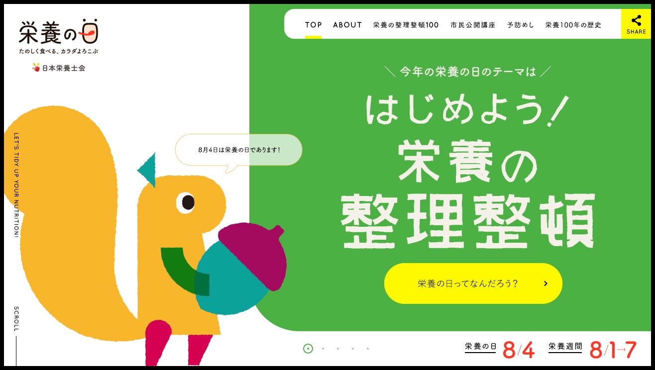 「栄養の日・栄養週間 2021」特設サイトでは、「栄養の整理整頓」を提案!現代の栄養課題とコロナ禍に乱れた食事・食生活に対して、管理栄養士・栄養士の英知を集結させたコンテンツを展開します。