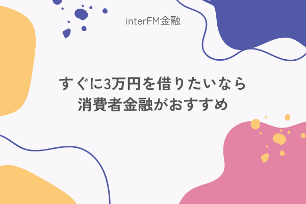 すぐに3万円を借りたいなら消費者金融がおすすめです。