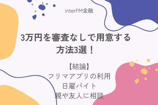 ここでは、3万円を審査なしで用意する方法を3つ紹介いたしていきます。