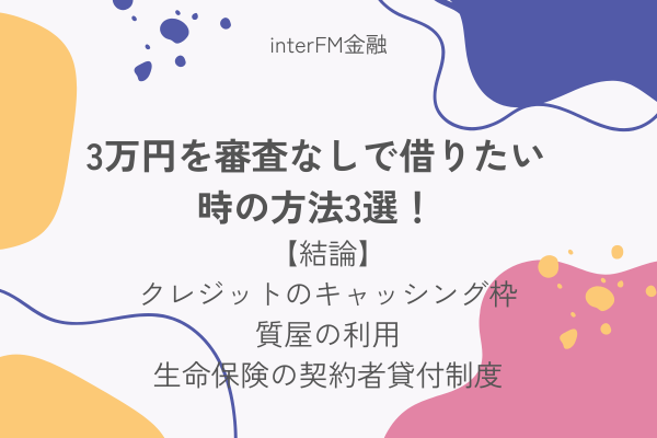 3万円を審査なしで借りたい時にどうすればいいのかを以下にまとめました。