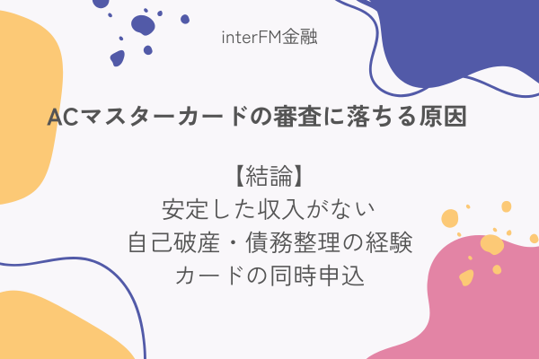 ここでは、ACマスターカードの審査に落ちる原因を紹介していきます。