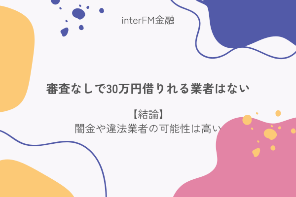 結論として、審査なしで30万を貸す金融業者は存在しません。