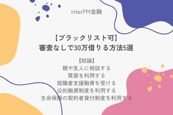 【ブラックリスト可】審査なしで30万借りる方法5選