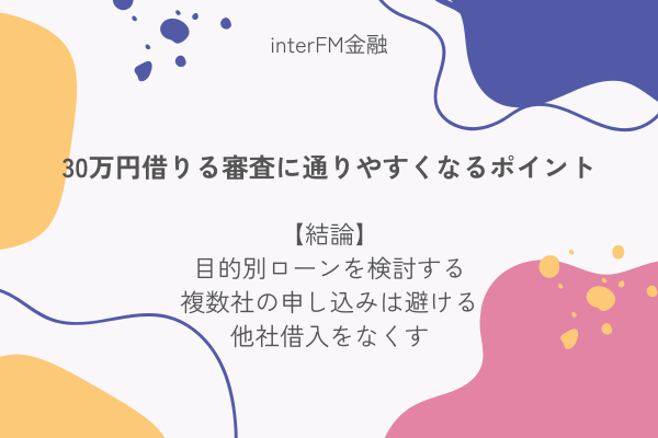 ここでは、30万円借りる審査に通りやすくなるポイントについて紹介していきます。