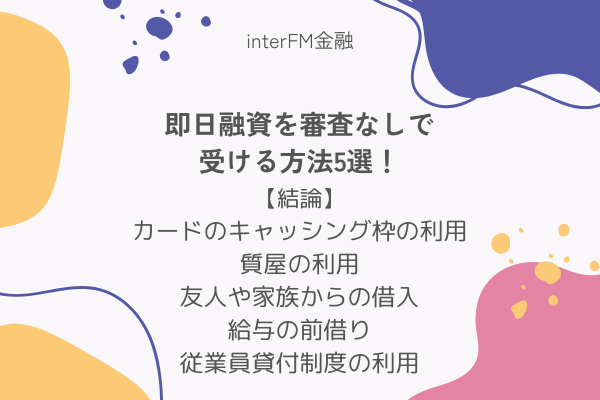 この記事では、即日融資を審査なしで借りられる方法5選を解説します。