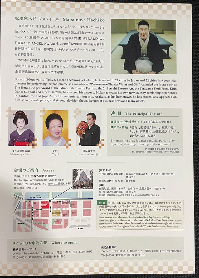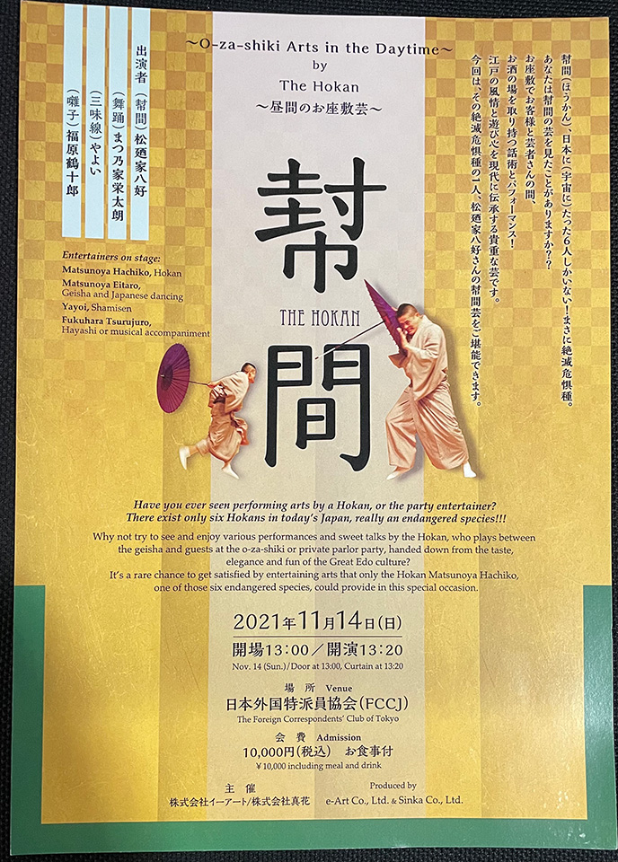 11月14日(日)「the Hokan 幇間〜昼間のお座敷芸 〜」はこちらです。