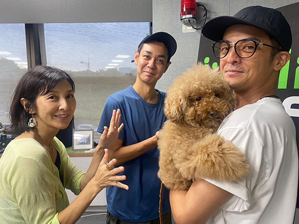 一瞬でわんちゃんと以心電信!収録中も割り込むテコを抱っこしていただきました。(DJmapi)