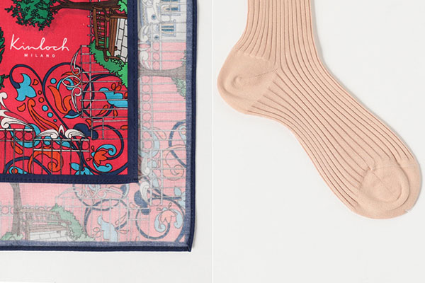 『BEAMS TOKYO CULTURE STORY』10/14(月・祝)〜18(金)のゲスト山吹祥子さんへのお土産は、「Kinloch」のMOCBAハンカチと「BRESCIANI」のリブソックス。