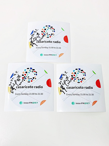 番組ではcasaricoto radio公式ツイッターをフォロー、リツイートして頂いた方の中から抽選で番組オリジナルステッカー差し上げています。