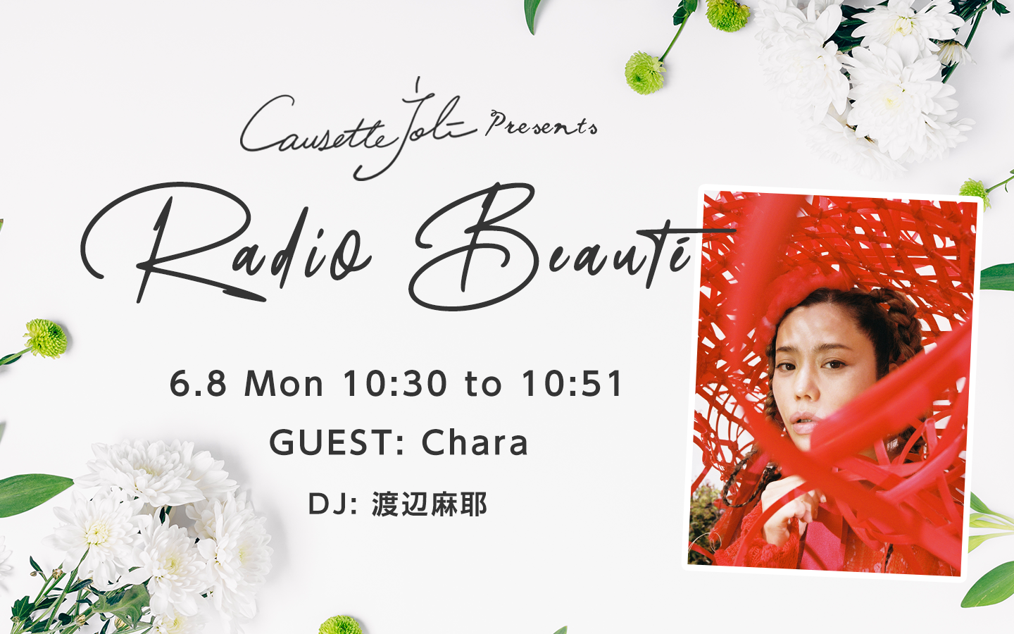 2020年6月8日(月)は、個性的な歌声とビジュアルで幅広い世代から絶大な人気を得るシンガーソングライター Charaさんをゲストにお迎え。アートの世界のように美しい自宅リビングからリモート出演です!多くの女性たちの心を捉えるCharaさんの美的センスの秘密に迫るほか、STAY HOME期間中のおうち時間の過ごし方、10年後・20年後も大切にしたい"自分らしさ”についてなど、様々なお話を伺います。