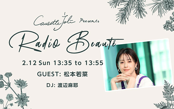毎月第二日曜13:35頃~お送りする「CausetteJoli presents Radio Beauté」は、"指先から花、咲う"日本製ネイルブランドCausette.Joliとともに、いまを輝く人たちをゲストに迎え、自分流のライフスタイルについて考えるスペシャルコーナー。