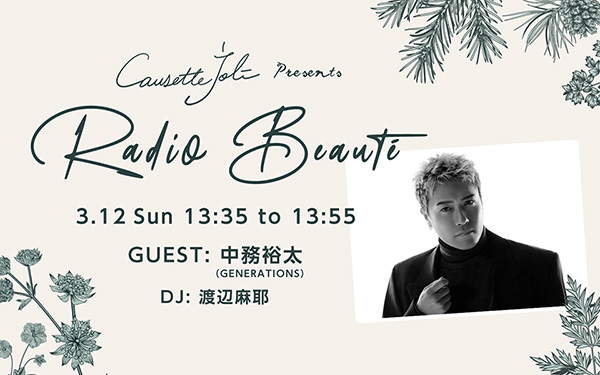 毎月第二日曜13:35頃~お送りする「CausetteJoli presents Radio Beauté」は、"指先から花、咲う"日本製ネイルブランドCausette.Joliとともに、いまを輝く人たちをゲストに迎え、自分流のライフスタイルについて考えるスペシャルコーナー。