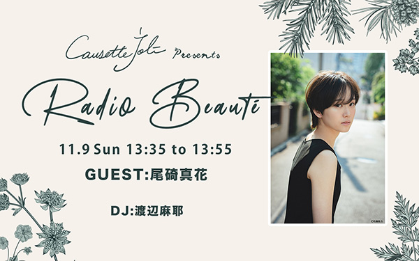 毎月第二日曜13:35頃~お送りする「Causette.Joli presents Radio Beauté」は、"指先から花、咲う"日本製ネイルブランドCausette.Joliとともに、いまを輝く人たちをゲストに迎え、自分流のライフスタイルについて考えるスペシャルコーナー。