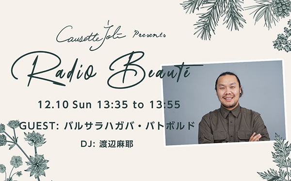 毎月第二日曜13:35頃~お送りしている「Causette.Joli presents Radio Beauté」は、"指先から花、咲う"日本製ネイルブランドCausette.Joliとともに、いまを輝く人たちをゲストに迎え、自分流のライフスタイルについて考えるスペシャルコーナー。