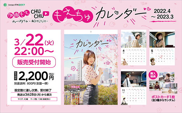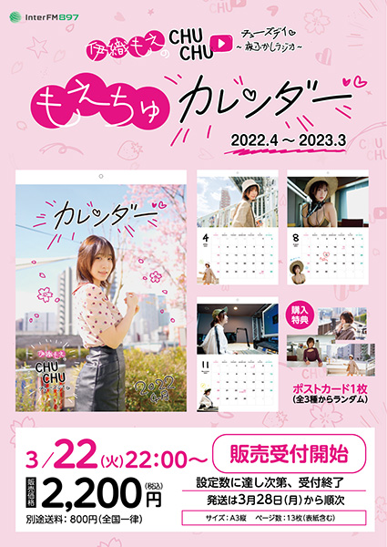 商品名称:InterFM「伊織もえのCHUCHUチューズデイ ~夜ふかしラジオ~」もえちゅカレンダー 2022.4~2023.3