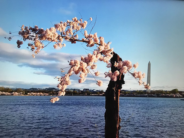ワシントンDCに綺麗に咲き並ぶ桜並木の中に一本だけ、イケてない、寂しい桜があるのですが今年も見事に咲きました。