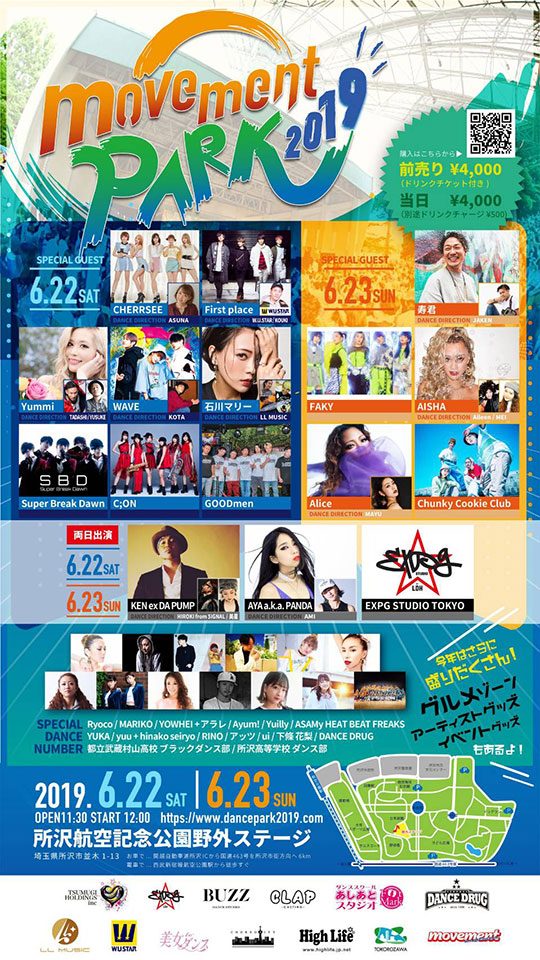 6/22(土)、23(日)所沢航空記念公園で開催される、movement dance school発の野外ストリートダンスフェス『movement PARK 2019』。