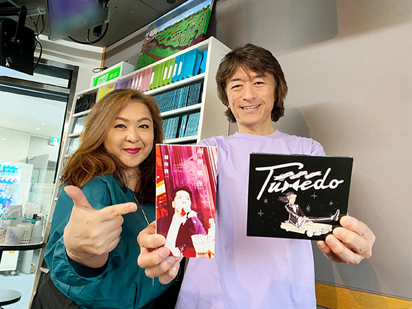DJ OSSHY「私は持ってきました!まずはTuxedoのタワレコ限定ベスト盤"The Best Of TUXEDO"CD2枚組。本家ではBestが出ていないので、これは良いなと。2枚目は忘れもしない、今年の1月9日、ネットで購入した7inchのCD Singleです。稲垣淳一さんの雨の朝と風の夜に。湯川れい子さんの式典で司会のアシスタントを務めさせて頂いたのですが、その時に必要で買いました」