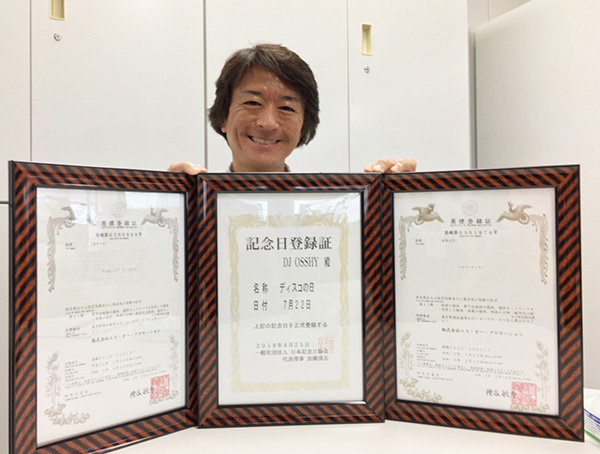 DJ OSSHY「有難うございます!”FAMILY DISCO”が 商標登録認可を受けました!"シルバーディスコ”、そして7月22日の"ディスコの日”、エイジレスなDISCOを目指します!」