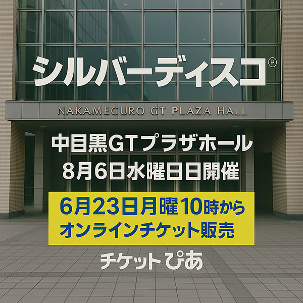 DJ OSSHY「8月6日(水)に行われる"シルバーディスコ"のオンライン予約チケットは、来週の月曜日、6月23日10時からチケットぴあで販売開始です!売り切れ必至、お早めに!!!」