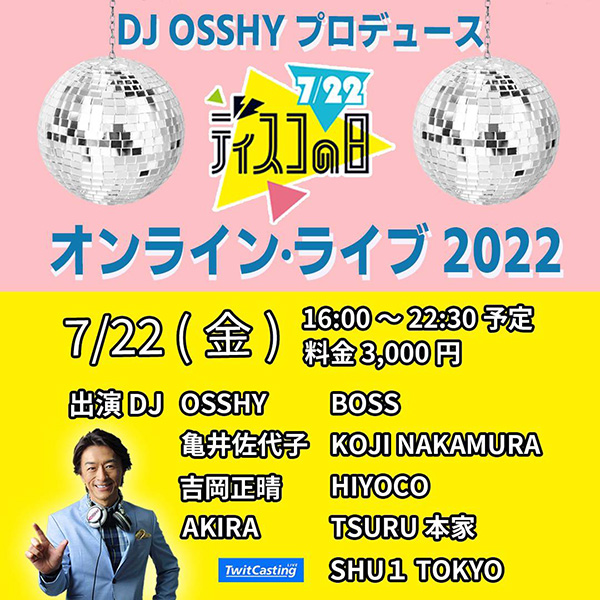 ・7/22(金)DJ OSSHY プロデュース ディスコの日オンラインライブ2022 @ ツイキャス