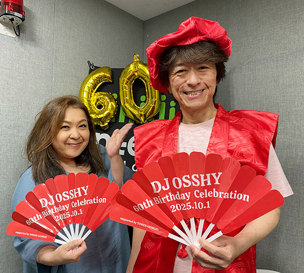 DJ OSSHY「見た目はみえないかもしれないけれど、中身はしっかりと60歳になっています。筋力と内臓系がね。。。気持ちだけは若々しい気持ちでお送りしていきたいと思います。どうぞ宜しくお願いいたします」