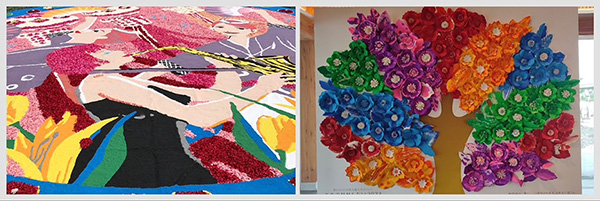 今春、藤川が創作した「全国都市緑化仙台フェア 未来の杜せんだい2023」のオープニングアートの花材を再資源化した再生紙を使い、仙台市民と大きなジャイアントフラワーを創作しました。