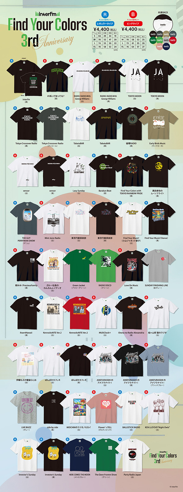 商品名称:interfm「Find Your Colors 3rd Anniversary」番組Tシャツ