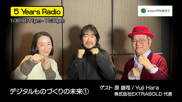 ゲストは、株式会社EXTRABOLD代表 原 雄司さんをお迎えして、デジタルものづくりの未来についてお話を伺います。