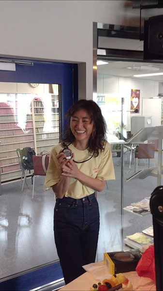 放送後には、佳子さんの事務所スタッフの方々と盛大にお祝い。番組からは、今後のディスクジョッキーライフのお供に、ストップウォッチをプレゼント。