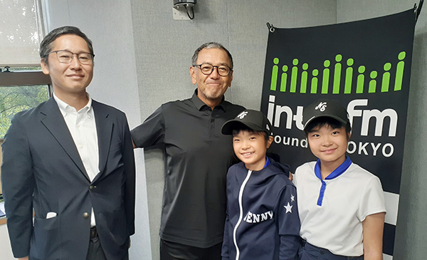 Jゴルフ鶴ヶ島の福田支配人と、双子のジュニア会員、藤本彩希さん、望央さん、ご両親の一家がスタジオ生出演!